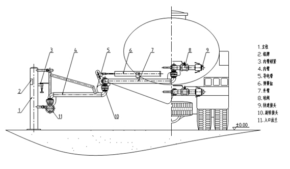 6.垂管(或者外伸臂):與槽車或者槽船對接部分。