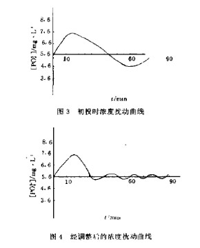 3)擾動試驗(yàn)調(diào)節(jié)器投運(yùn)后,為鑒別調(diào)節(jié)過程是否滿足要求,并修改整定參數(shù),必須對系統(tǒng)進(jìn)行如下的擾動試驗(yàn):切除自動,將磷酸鹽泵行程調(diào)至80%,當(dāng)磷酸根濃度達(dá)到7.3mg/L時,將磷酸鹽泵行程調(diào)回50%,并立即投入自動,觀察調(diào)節(jié)過程及記錄儀錄下的擾動曲線(圖3),由曲線可以看出,磷酸根濃度經(jīng)過幾次波動后才回到原來的數(shù)值,說明有過調(diào)現(xiàn)象,應(yīng)增大凋節(jié)器比例帶入同時由曲線可以看出,磷酸根濃度需經(jīng)過較長時間才能恢復(fù)到原來的數(shù)值,說明積分時間偏大,應(yīng)調(diào)小民經(jīng)過幾次調(diào)整后,磷酸根濃度變化如圖4所示,說明達(dá)到了比較滿意的調(diào)節(jié)效果,系統(tǒng)可以正式投入運(yùn)行。調(diào)節(jié)器最終參數(shù)為:6一100拓、T;一3min、Tn一2mln、周期一2“‘“。t/min圖3初投時濃度擾動曲線圖4經(jīng)調(diào)整后的濃度擾動曲線3運(yùn)行維護(hù)‘裝置的運(yùn)行質(zhì)量與維護(hù)水平有直接聯(lián)系,要求儀表工作人員有較高的技術(shù)水平和良好敬業(yè)精神,同時應(yīng)制訂完善的設(shè)備維護(hù)計(jì)劃。運(yùn)行和維護(hù)的主要參數(shù)是磷酸根分析儀。l)每日檢查儀表指示值、水路、藥路等系統(tǒng)是否泄漏,水樣流量是否達(dá)到儀表要求。每十五天用7mg/L標(biāo)樣進(jìn)行校驗(yàn),當(dāng)l測量平均值一標(biāo)樣值l>1.0時,必須對儀表進(jìn)行重新標(biāo)定。并將所有閥管移動一次位置。