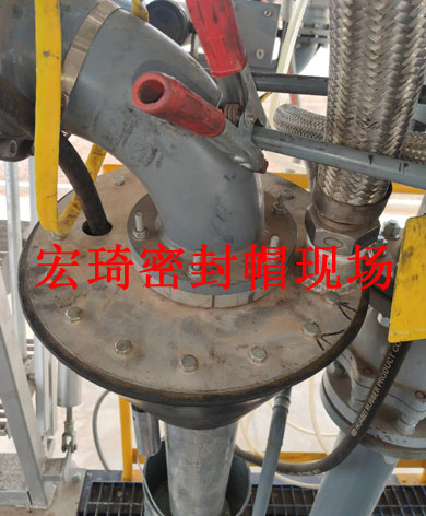 充氣式鶴管密封帽裝置,屬于密封范圍。它可以解決鶴管在裝卸槽車時與槽車罐口的密封問題。其主要技術(shù)特征是本裝置固著在鶴管上,通過充氣把槽車罐口密封住,使槽車中揮發(fā)氣體順著鶴管導氣管排到揮發(fā)氣處理裝置中。其用途主要用在鶴管密封裝卸車上。