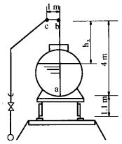 昆明地區(qū)某油庫接卸70號車用汽油.密度p=720kg/m3.運(yùn)動粘度v=0.6×10-6m2/s.下裝鶴管大流量Q=58m3/h.下裝鶴管流速。h=2.05m/s.下裝鶴管的水力坡度i=0.0505.計算長度為m(L=5m.Ld=4m).當(dāng)?shù)馗哂蜏?C.該溫度下70號車用汽油的汽化壓力p。=65704.6Pa.當(dāng)?shù)卮髿鈮簆a=80218.4Pa.現(xiàn)進(jìn)行下裝鶴管氣阻校核.下裝鶴管氣阻校核示意圖見圖2。