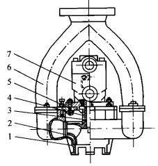 圖4液動潛油泵結(jié)構(gòu)圖1—泵體:2—葉輪:3—軸套:4—機(jī)械密封:5—泵蓋:6—輸油管:7—馬達(dá)液動潛油泵技術(shù)比較成熟,從根本上解決了氣阻、汽蝕問題,使用效果較好,其缺點(diǎn)是要進(jìn)行較大幅度的工藝改造,投資費(fèi)用較高及設(shè)備安裝操作復(fù)雜。