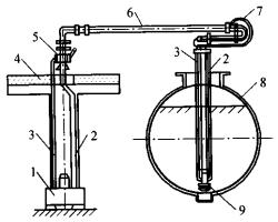 6—下裝鶴管:7—膠管:8—罐車:—油泵