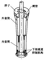 進(jìn)入下裝鶴管。與此同時,部分溫度低的油料也會進(jìn)入中部內(nèi)、外套筒之間的流道,起到混層降溫的作用,以防止因上部油溫過高在此造成氣阻。隨著卸油過程的進(jìn)行,液面不斷下降,浮子和外套筒也隨著下降,當(dāng)浮子下降至一定高度(一般為1.2~1.3m)時,外套筒下緣觸及下部流道控制機(jī)構(gòu)的頂桿在重力作用下,密封環(huán)被提起,使油料從內(nèi)套筒下部進(jìn)入下裝鶴管,直至卸完。