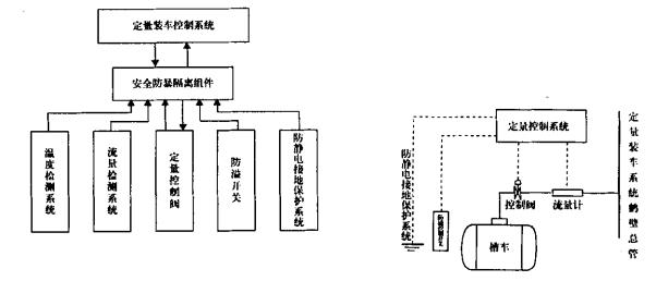 圖l定量裝車(chē)控制系統(tǒng)框圖 圖2定量裝車(chē)控制系統(tǒng)原理示意圖