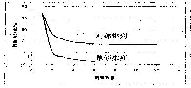 某油庫,棧橋共有航煤裝卸鶴管12根,間距12米,支管內(nèi)徑100mm,主管內(nèi)徑150mm,管材為無縫鋼管,泵機(jī)采用變頻器調(diào)節(jié)。對裝卸鶴管收油單側(cè)和對稱布置情況的運(yùn)行工況進(jìn)行了模擬計(jì)算研究。計(jì)算結(jié)果如圖2所示。