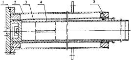 如圖5所示,用一個(gè)小型單作用汽缸和棘輪棘爪機(jī)構(gòu)實(shí)行鎖緊。棘輪1裝在繩輪軸3上,棘爪4與活塞連成一體。當(dāng)裝車完成后,繩輪機(jī)構(gòu)將鶴管完全提上來,小汽缸放氣,在壓縮彈簧的作用下,棘爪4伸出,阻止棘輪反向轉(zhuǎn)動(dòng),即可達(dá)到鎖緊目的。
