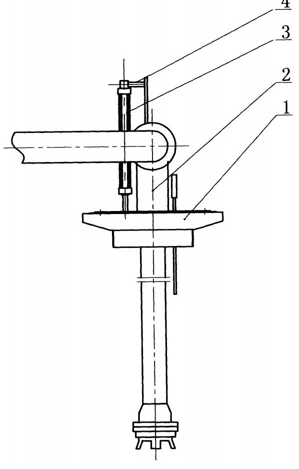 圖1是槽車罐車密閉裝卸鶴管垂管密封帽結(jié)構(gòu)示意圖,一種可升降鶴管密封帽裝置。1是密封帽,2是鶴管垂管,3是伸縮缸,4是伸縮缸支架。