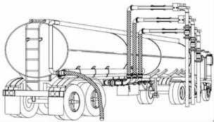 b)下裝鶴管實(shí)現(xiàn)液下裝油,實(shí)現(xiàn)靜態(tài)裝車,不像上裝方式油流對(duì)罐底的沖擊產(chǎn)生大量的靜電,解決了不安全隱患。